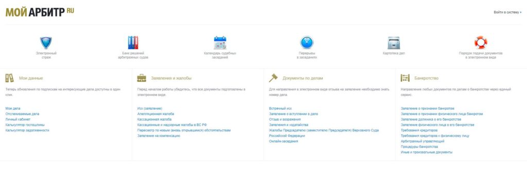 Ссылка для входа находится на главной странице сервиса https://my.arbitr.ru/#index