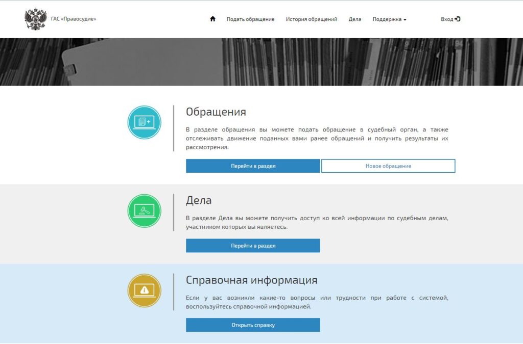 Для того, чтобы войти в Личный кабинет на главной странице нажмите на ярлык «ГАС «Правосудие» или перейдите по ссылке